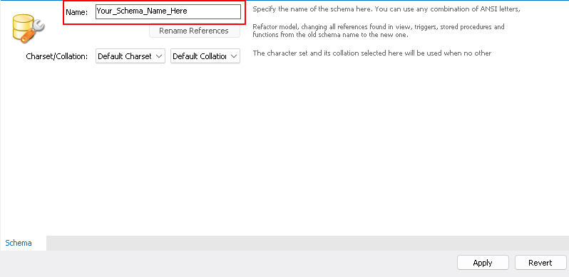 A schema in Workbench represents a database that stores tables and data in those tables. Schemas are very important, without them, you don't have a place to put data. This section walks you through how to create a new schema.