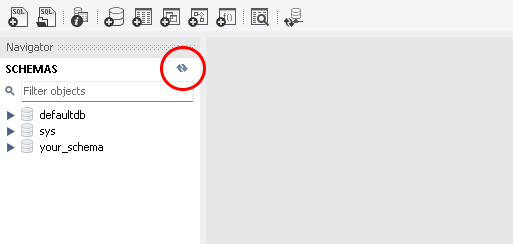 Left-click the Refresh button circled in red if you don't see your new schema in the Schemas panel.