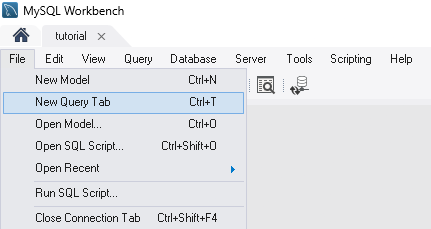 Left-click New Query Tab to create a new query tab in the SQL Editor.