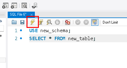 Left-click the Execute button (lightning bolt icon) to run the SQL script.