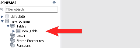 Expand your Schema and Tables section so you can confirm the table you created exists.